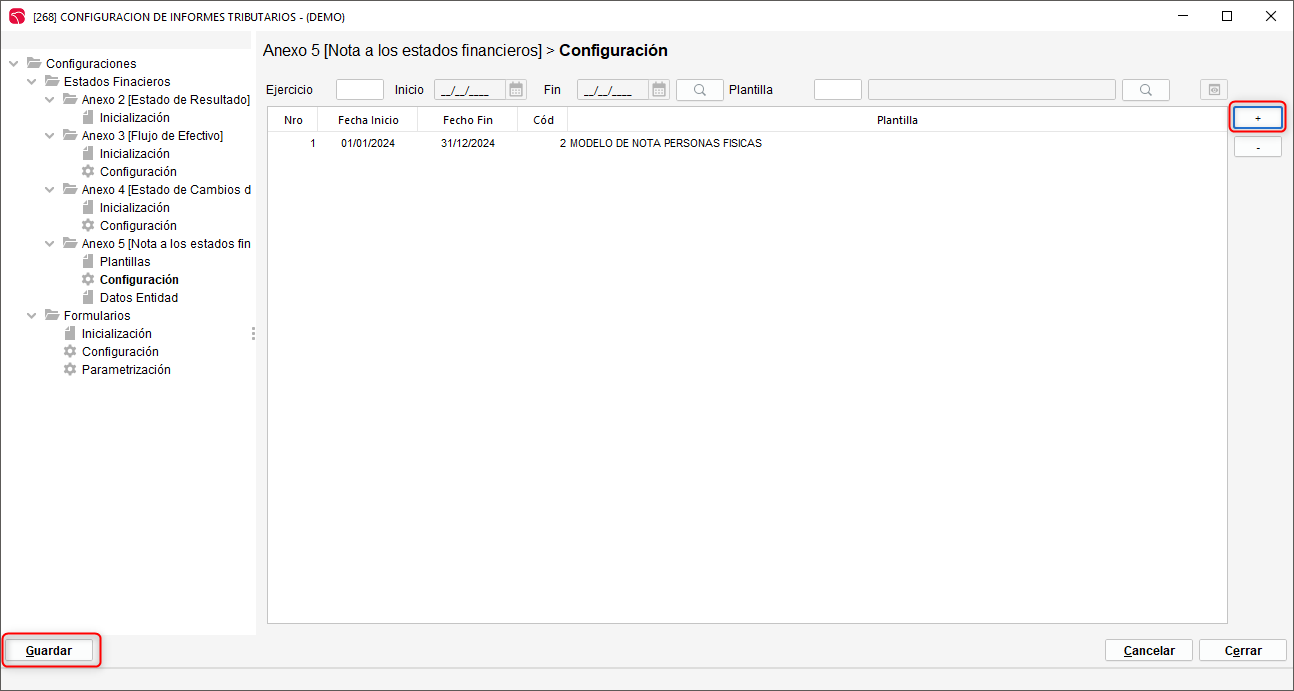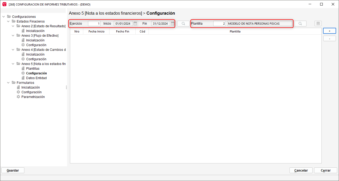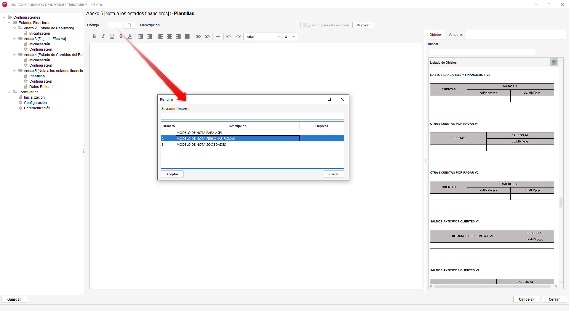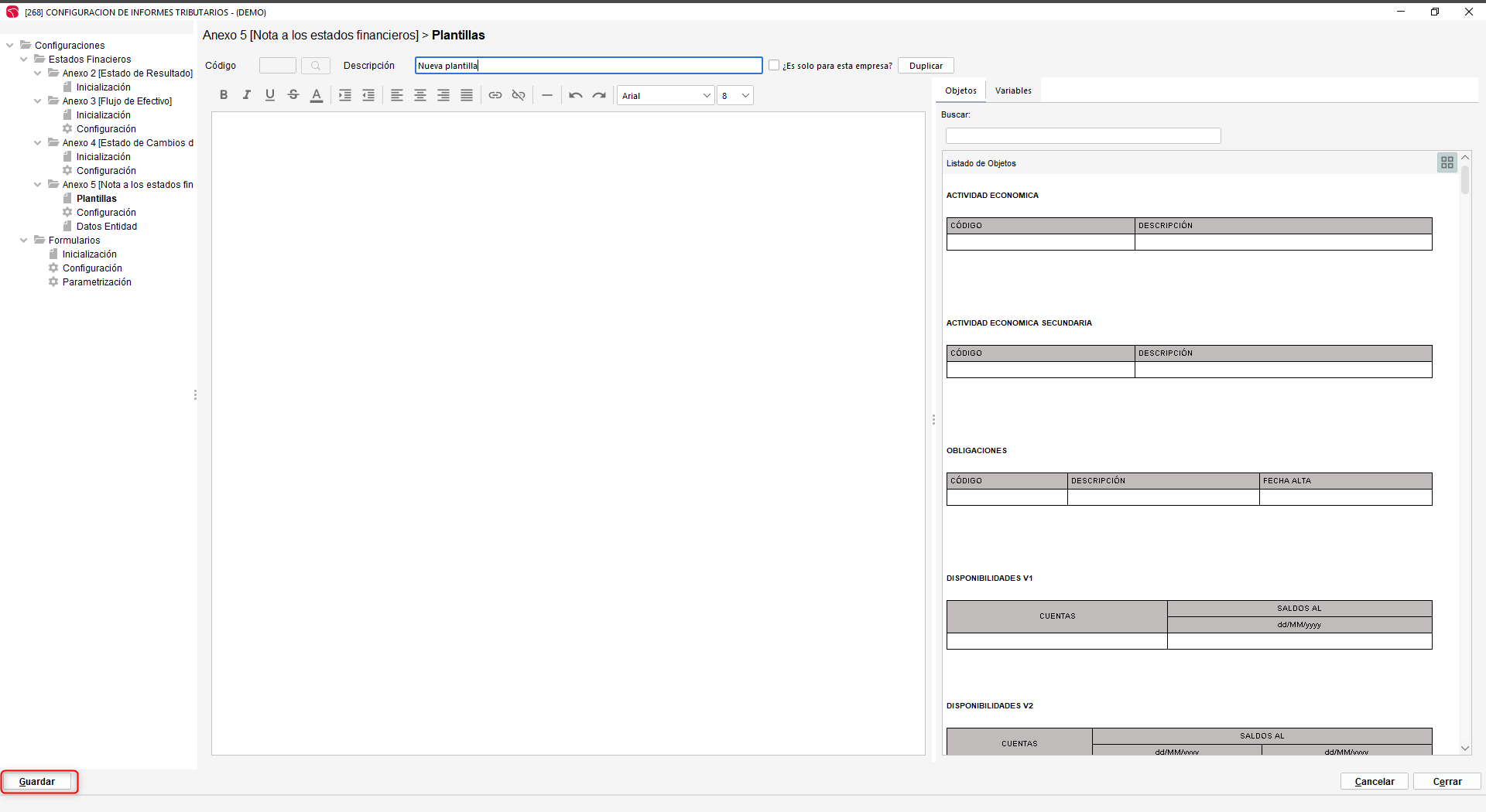 Una vez guardada la plantilla, podremos utilizarla en nuestra configuraci贸n de nota dentro de form 258.