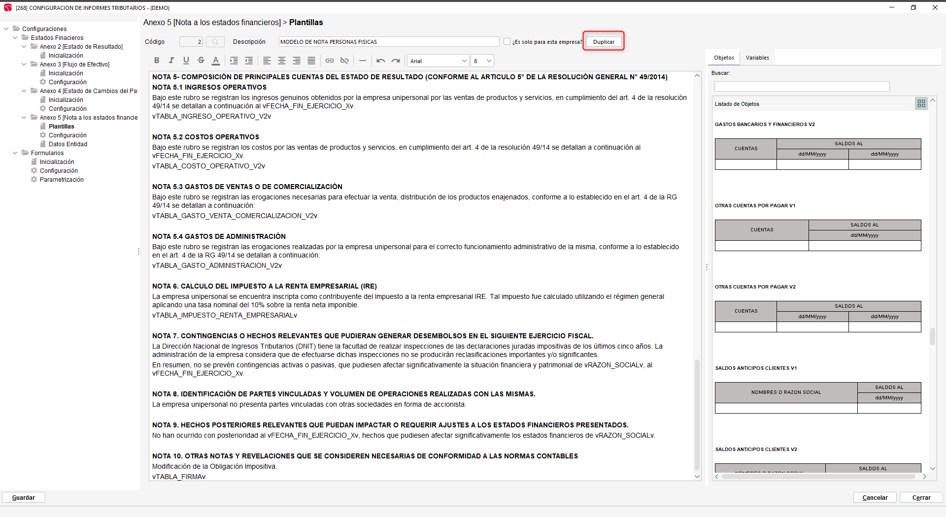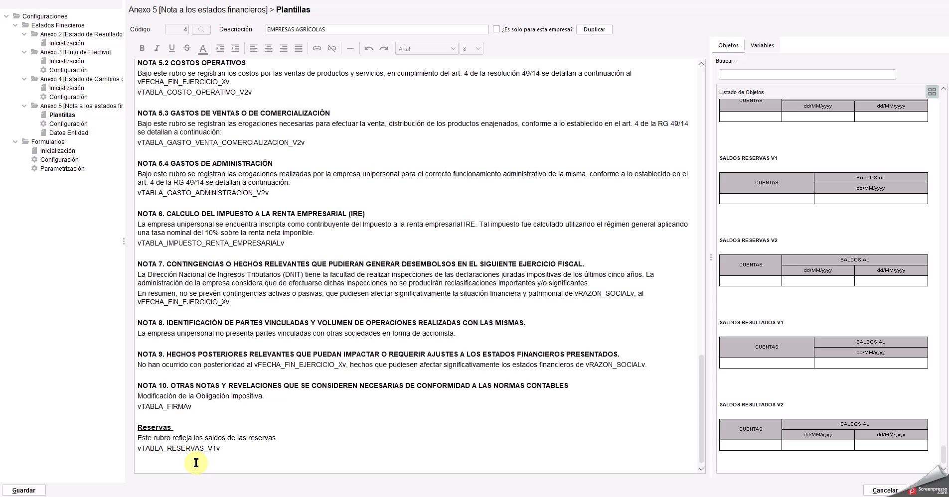 Para generar la nota a los estados contables, podemos asignar una de las plantillas base con las que cuenta el sistema, para lo cual disponemos de plantillas para asociaciones sin fines de lucro, personas f铆sicas y sociedades.