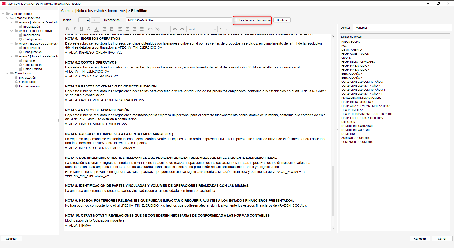 Al aplicar esta configuraci贸n, la nota que estemos personalizando, solo aparecer谩 como plantilla en esta empresa.