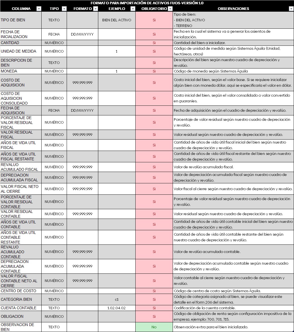 Veamos a continuaci贸n las especificaciones correspondientes al formato excel que posteriormente estaremos importando al sistema.